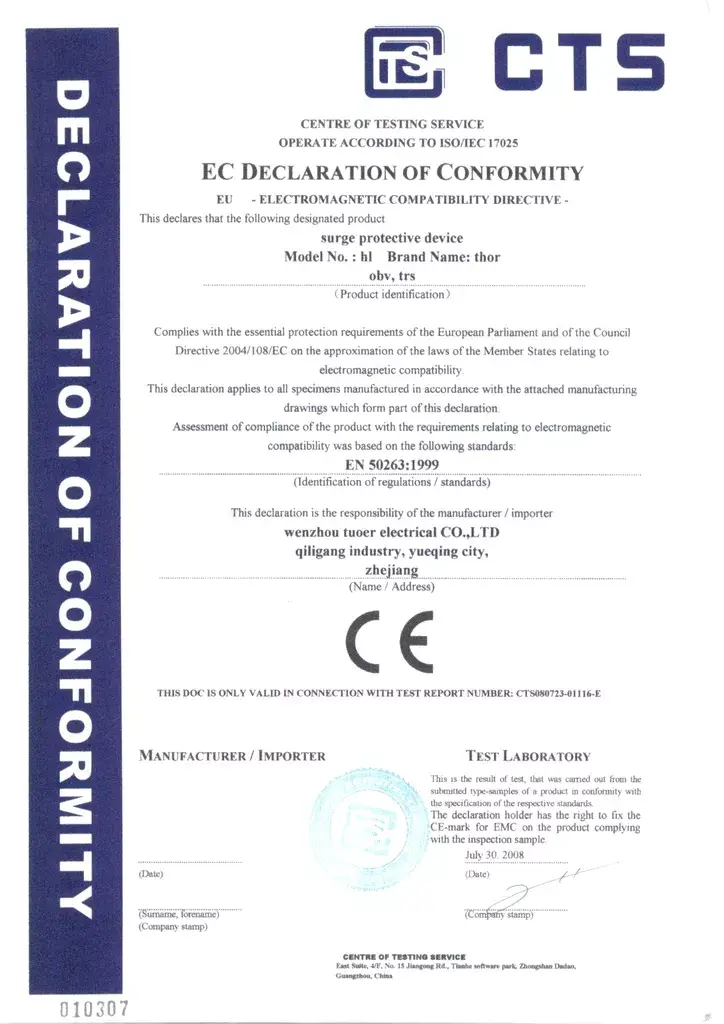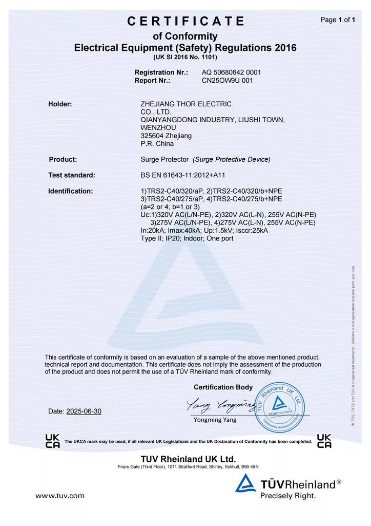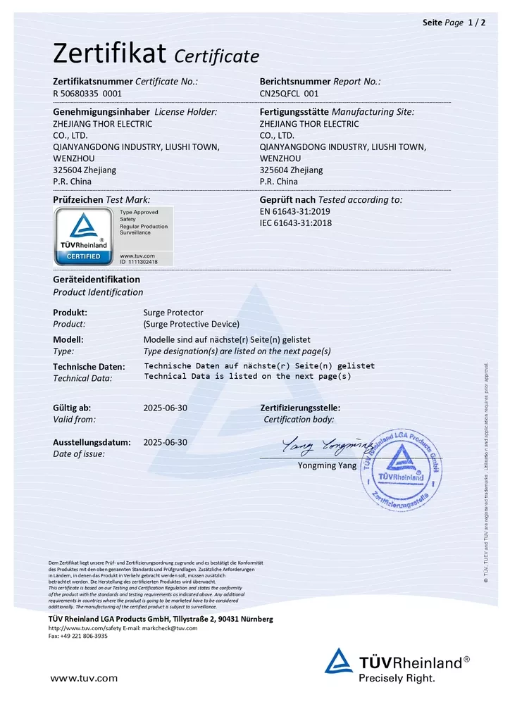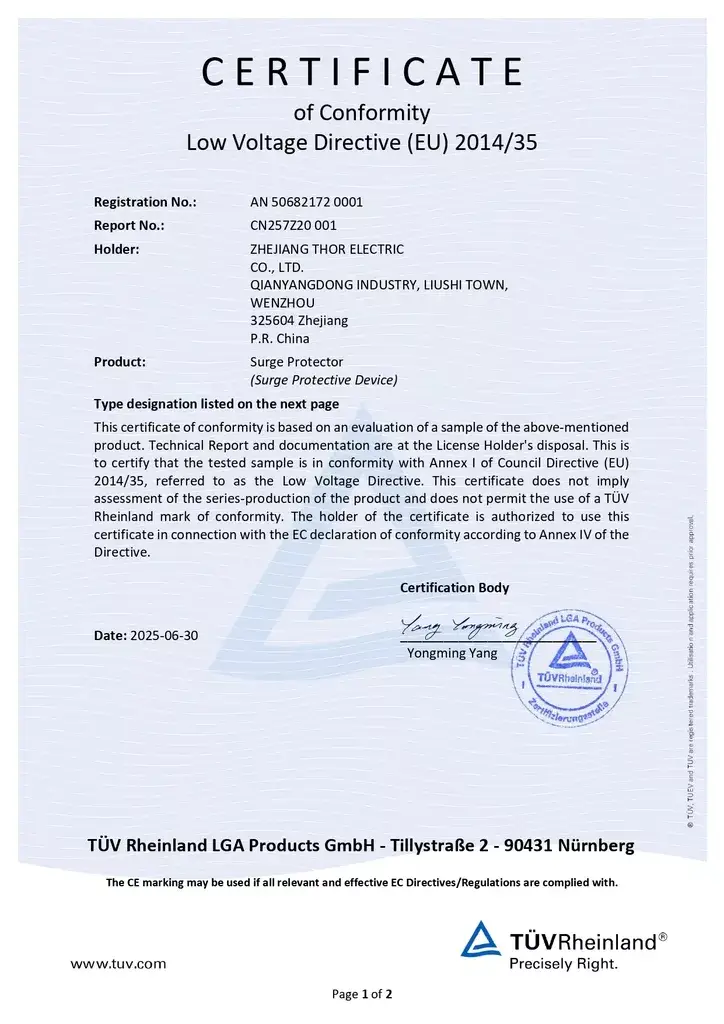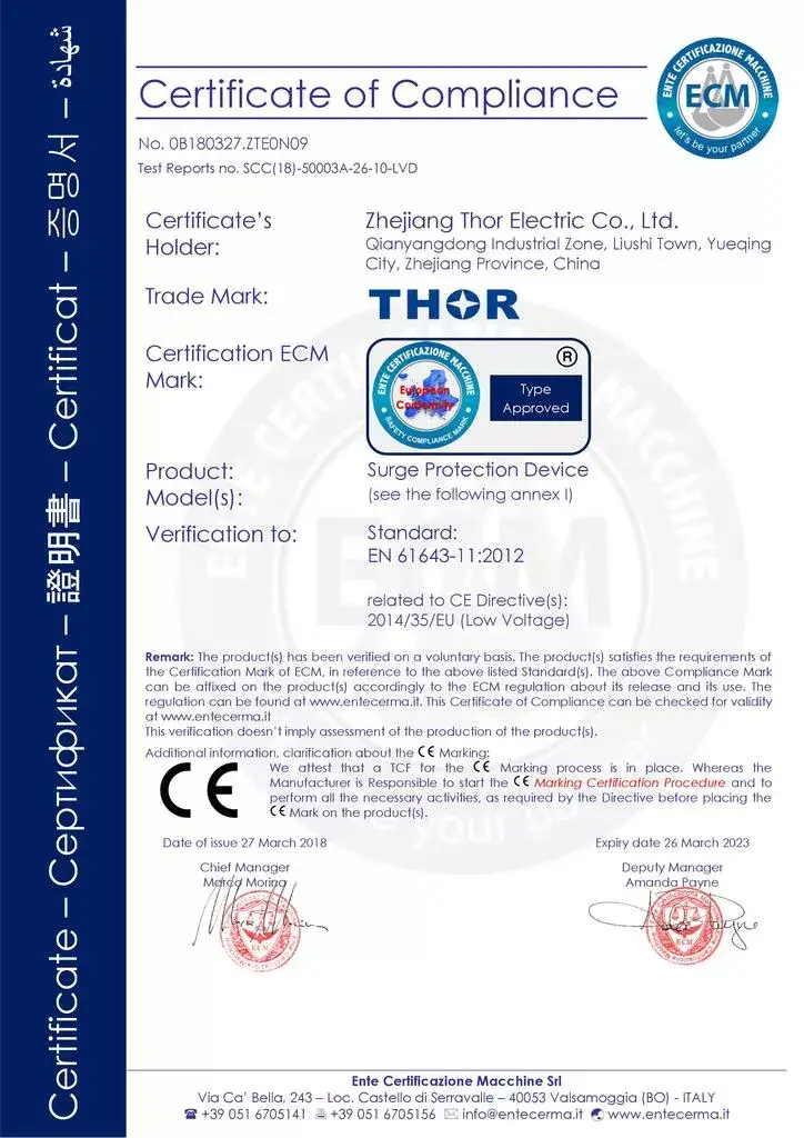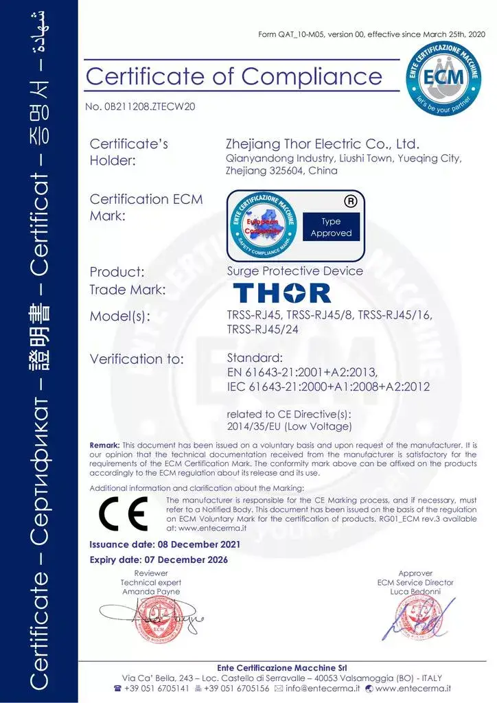 THOR Surge Protection Device CE Certificate