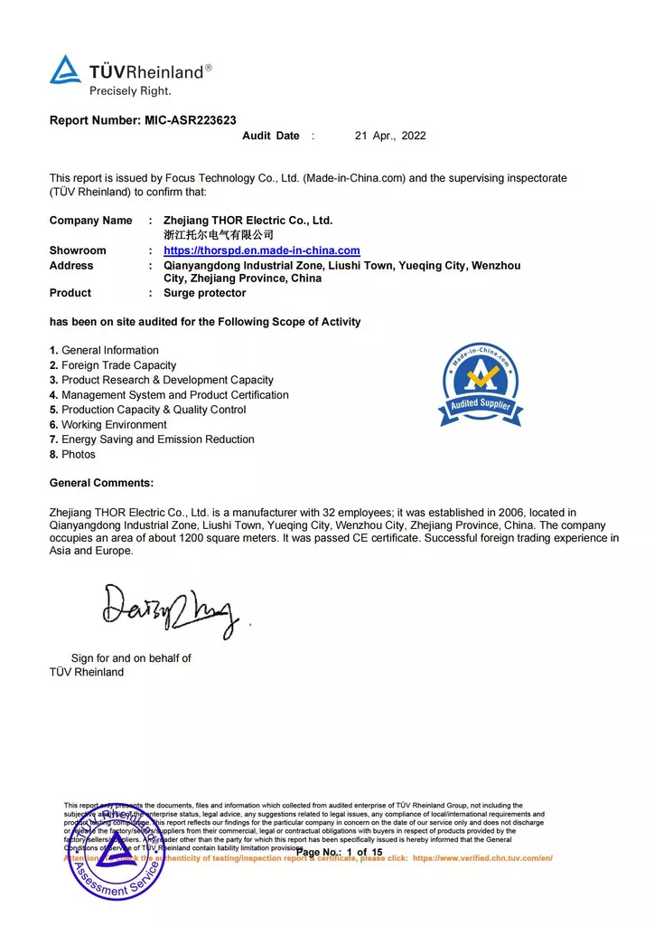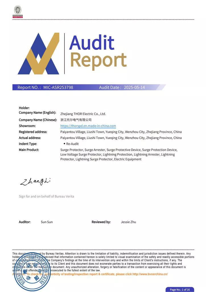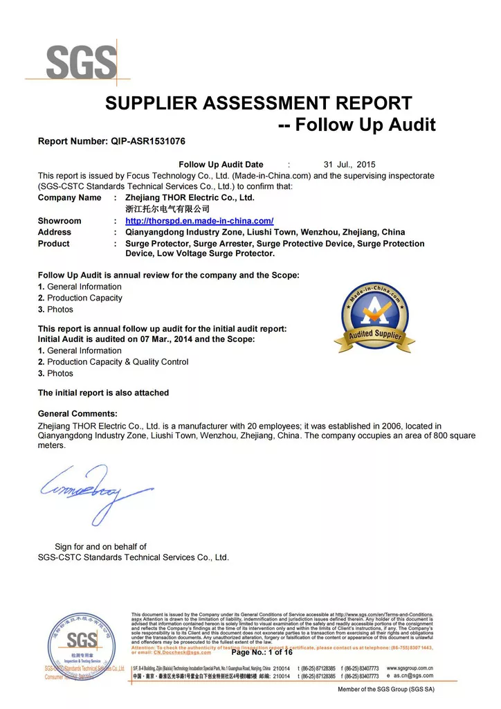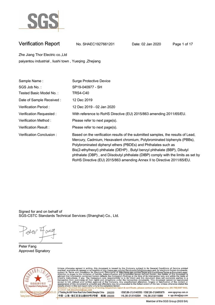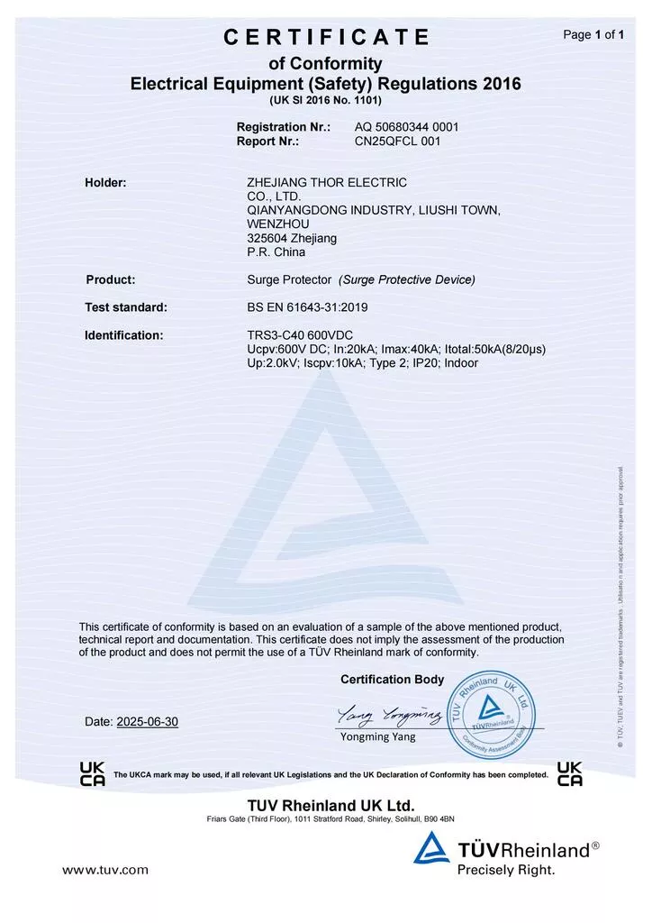 THOR Surge Protection Device CE Certificate