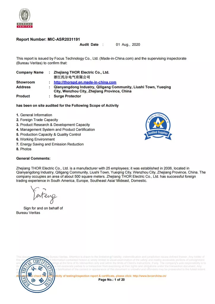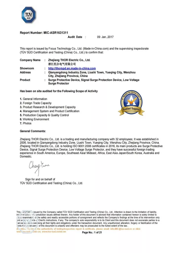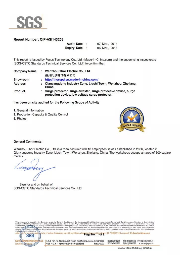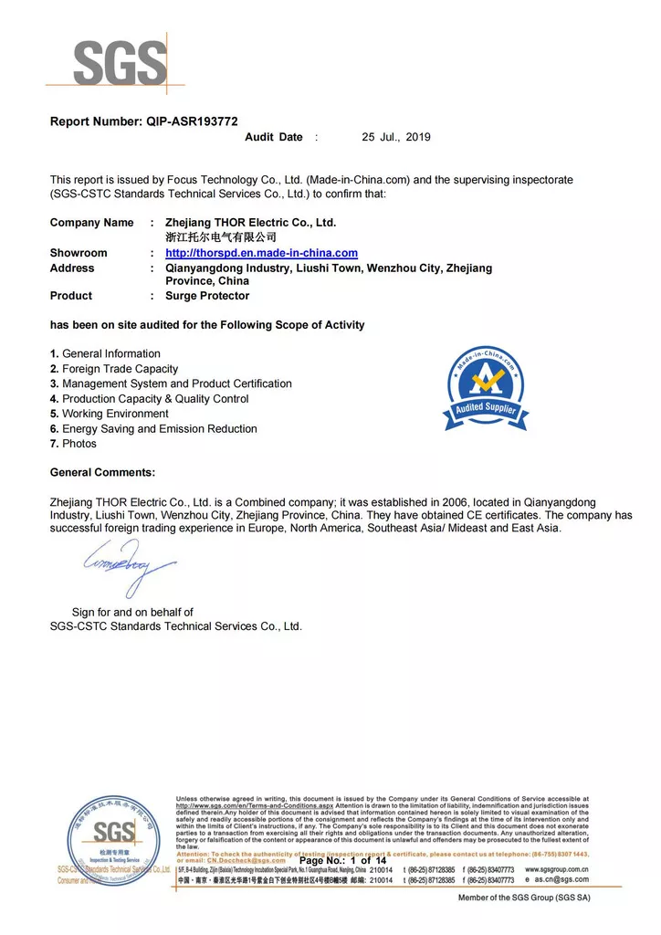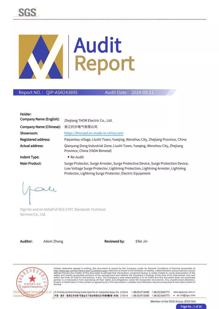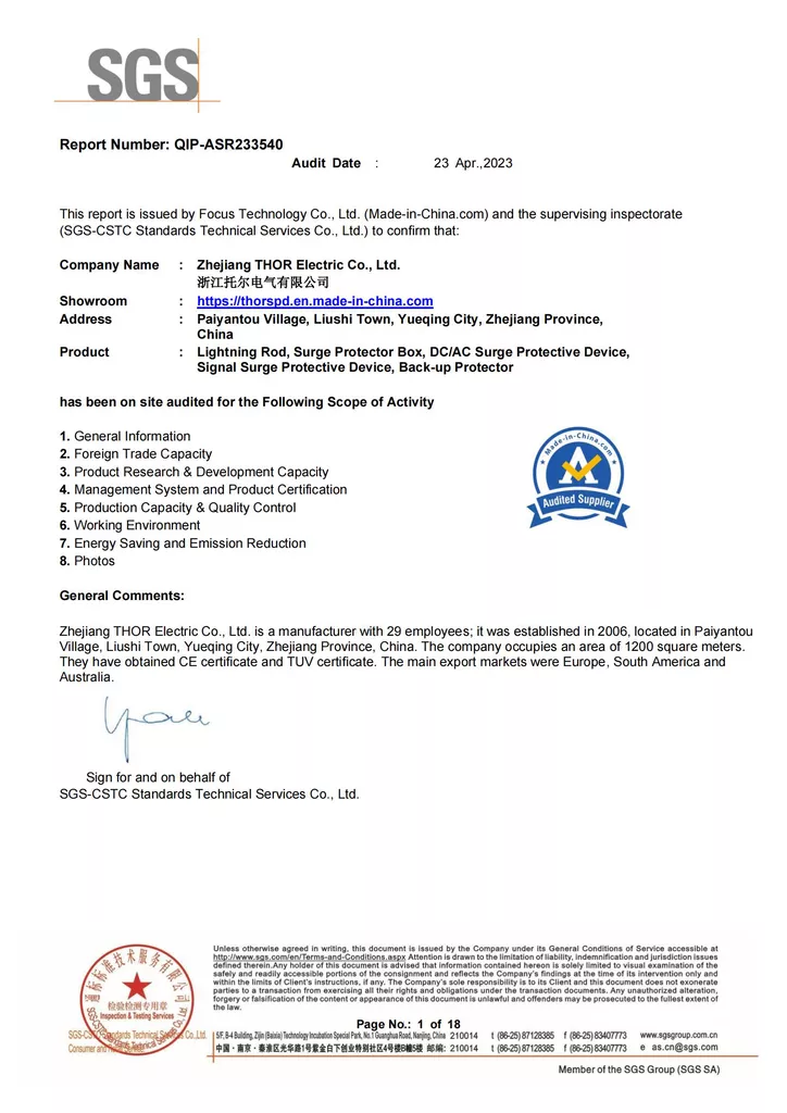 THOR Surge Protection Device CE Certificate