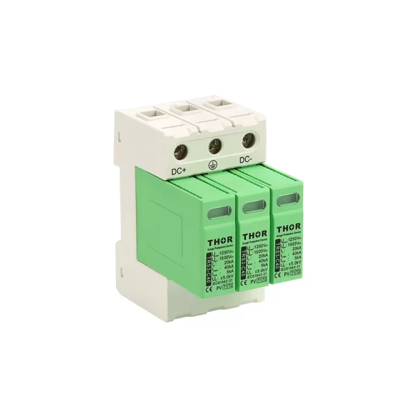 DC string protection for utility-scale and commercial PV systems requiring robust T1+T2 defense.